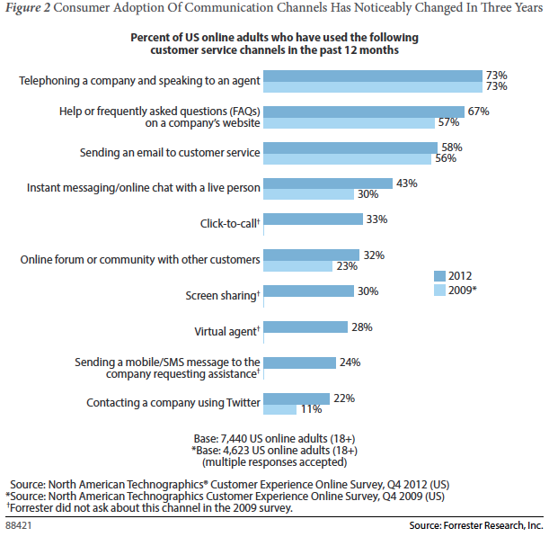 Forrester: “Consumer adoption of communication channels has noticeably changed in three years”