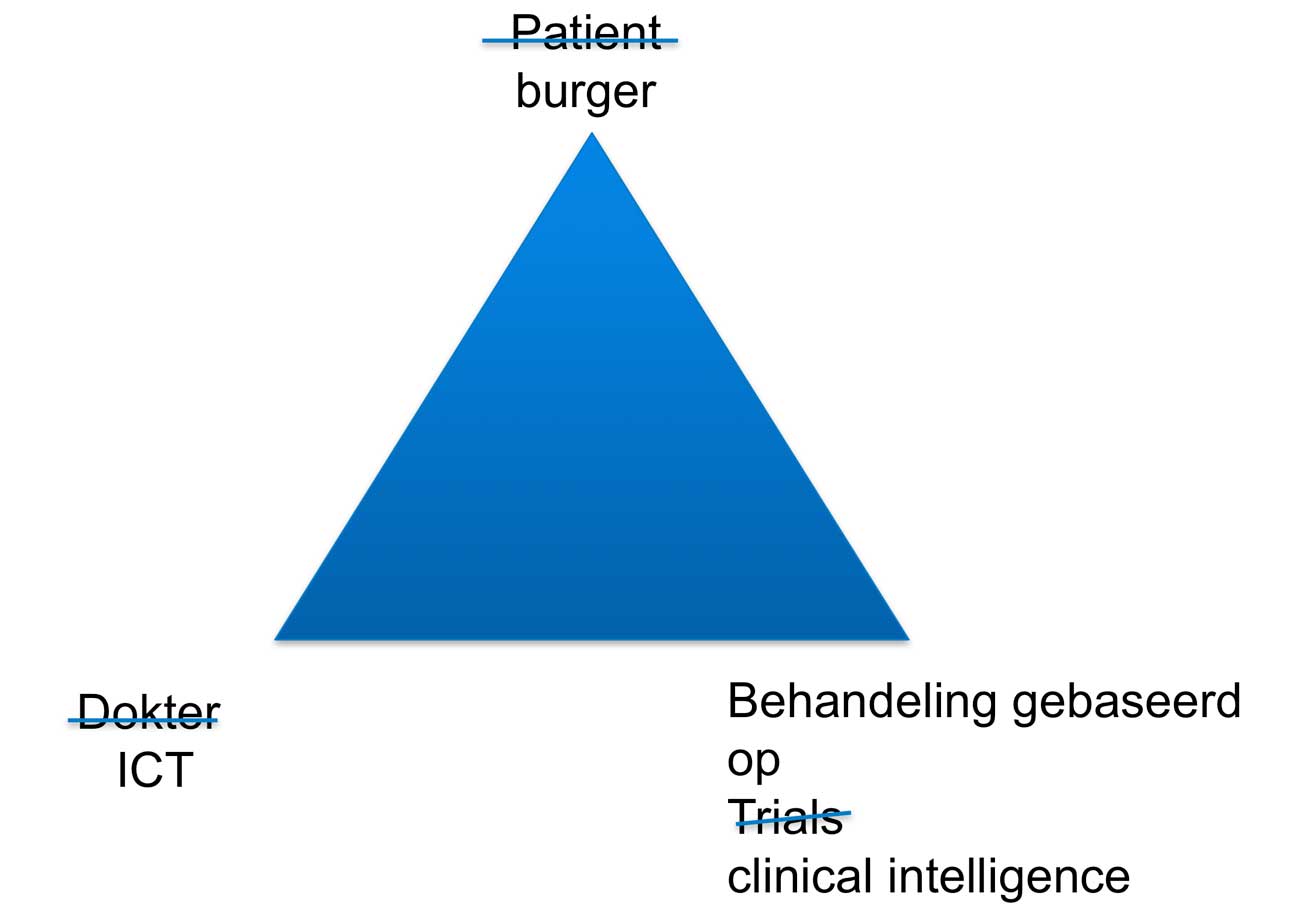 Door een toename van sensoren in de thuisomgeving en quantified self-toepassingen komen burgers steeds minder vaak in een ziekenhuis terecht. Wetenschappelijk onderzoek blijft belangrijk om op basis van data prescriptieve zorg te kunnen verlenen. Het is de vraag of het ziekenhuis in de toekomst een platformrol zal vervullen of dat medische platformen, als een soort Uber, zorg-on-demand bieden en bemiddelen tussen burger en zorgverlener.