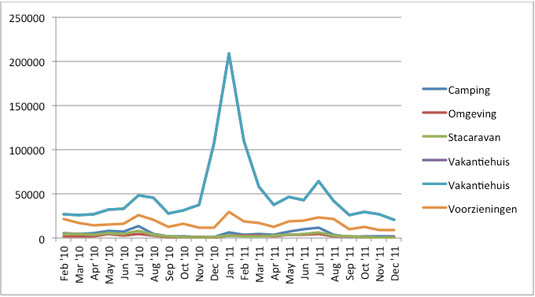 Aantal zoekopdrachten in Marktplaats-groep Vakantie (feb 2010 – dec 2011)