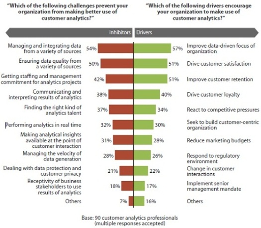 Was voorheen de uitdaging het beschikbaar maken van klantgegevens, tegenwoordig – met een overvloed aan klantgegevens – streven analytici vooral naar klantgerichte, op data gebaseerde besluitvorming. Verder streven zij vooral een grote klanttevredenheid en het behouden van klanten na.