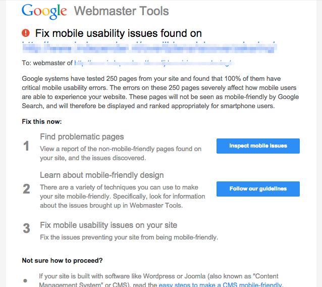 Na bovenstaande aankondigen en alle andere trends die je op mobile-gebied ziet, kun je niet zeggen dat je niet gewaarschuwd bent. Google stuurt de afgelopen maanden via Webmaster Tools ook proactief meldingen als je site niet goed ingericht is op mobile.