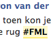Ook zijn er personen die blijkbaar een meer ‘eerlijke’ zelfpresentatie voorkeur hebben en die hashtags als #FML (Fuck My Life) op zowel Facebook als Twitter gebruiken (zoals in het videootje hierboven) of verhalen van ziekte en verlies op Facebook plaatsen. Soms als frustratie, soms als uitlaatklep, maar wel eerlijk. De reacties hierop zijn meestal afkomstig van intimi, en meestal in de vorm van comments.