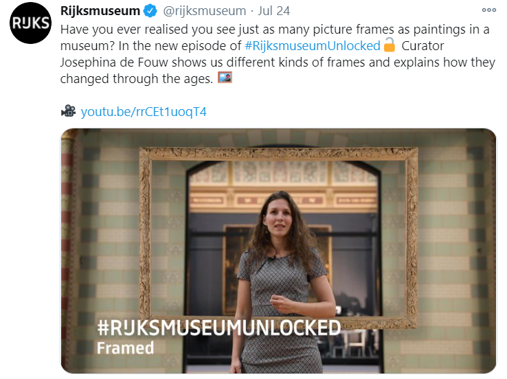 We hadden ook bewondering voor de manier waarop musea reageerden op de sluiting na de door de regering aangekondigde lockdown-maatregelen. Door hun deuren digitaal te openen voor het publiek, konden de conservatoren van het @Rijksmuseum via #RijksmuseumUnlocked de bijzondere geheimen achter hun schilderijen onthullen. We hebben genoten van de manier waarop mensen vanuit hun eigen huiskamer door het @VanGoghMuseum konden lopen.