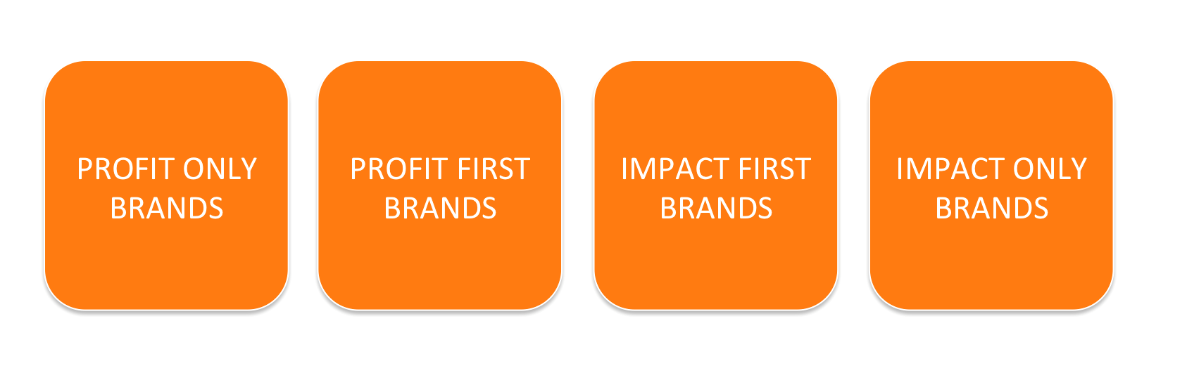 Als we met een bedrijfskundige bril naar merken kijken en ze op basis van hun business-strategie indelen, zien we vier soorten merken: Profit Only Brands, Impact Only Brands, Impact First Brands en Profit First Brands. Het is belangrijk om bij het ontwikkelen van je business-strategie de verschillen tussen deze merken goed te begrijpen om te bepalen wat voor soort merk en organisatie je bent of wilt zijn.