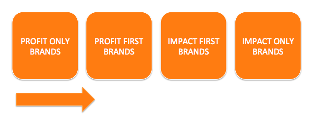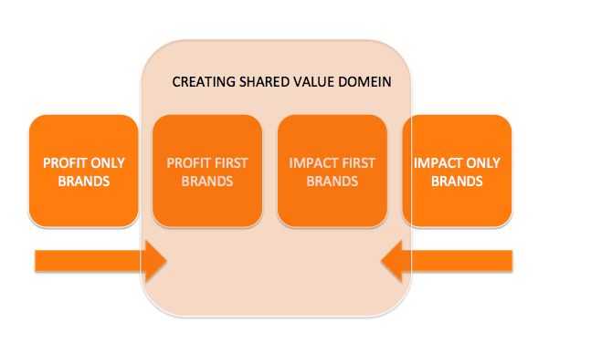 Tegelijkertijd zien we dat ook de filantropische Impact Only Brands net als de Impact First Brands steeds meer het belang inzien van het inrichten van een op bedrijfskundige principes geschoeide merkorganisatie en in die zin ook leren van en zelfs in bepaalde mate opschuiven in de richting van meer commerciële winstgeoriënteerde organisaties. Profit First Brands zien steeds meer de noodzaak om Creating Shared Value-principes te incorporeren in hun business en merkstrategie. Ze generen dan ook steeds meer sociale impact. Voor Profit First Brands is het daarom ook belangrijker om net als Impact First Brands een in de samenleving verankerde brand purpose te hebben.