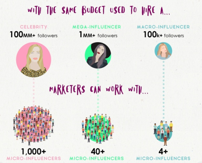 Op basis van de cijfers zie je dat er veel voordelen zijn aan het werken met micro-influencers. Een andere goede reden is de inzet van je marketingbudget. De minder bekende Instagrammer is een stuk gunstiger voor je portemonnee. Bloglovin onderzocht de tarieven van micro-influencers en concludeerde dat een gemiddelde betaalde Instagram-post niet meer dan 500 dollar kost. Vergeleken met het prijskaartje van 29.600 dollar voor een post door NikkieTutorials, is dat natuurlijk een koopje (wel ruim twaalf miljoen volgers!). Benieuwd wat Instagram-grootheden gemiddeld verdienen? Check de Instagram Rich List 2019.
