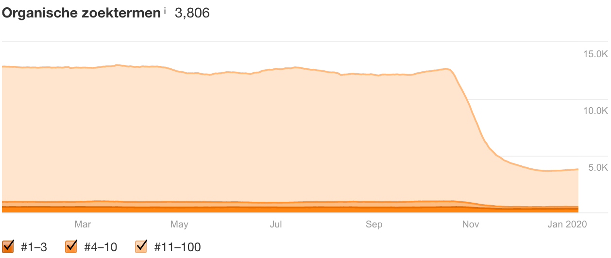 Dit wordt veroorzaakt doordat Hoogeveen.nl veel minder vindbaar is op ongeveer negenduizend verschillende zoektermen in Google: