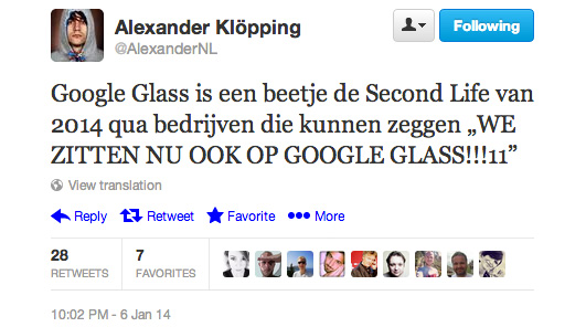 Vanaf 17u komen deze en andere wetenswaardigheden dus ook weer aan de orde in de Google Hangout on Air met o.a. Raimo van de Klein (oprichter van GLASSEFFECT, dat diensten ontwikkelt voor Google Glass), Ben van der Burg, Arvid Bux en Roeland Stekelenburg. Volg ‘m hier!