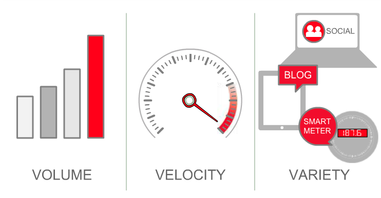 Voor de organisatie van het Big Data-symposium heb ik diverse organisaties benaderd om te vragen welke kennis zij over het onderwerp hebben en wat zij op het gebied van Big Data doen. Bij een aantal (traditionele) bedrijven gingen de wenkbrauwen omhoog. “Big Data? We noemen het gewoon ‘Data!‘” zei een van de directeuren van een ’s wereldgrootste marktonderzoekbureaus, dat voor bedrijven als Albert Heijn klantendata analyseert. Echter, Big Data is iets anders dan de traditionele ‘analytics’ die wij jarenlang hebben toegepast. En het onderscheidt zich in de drie peilers volume, velociteit en variëteit.