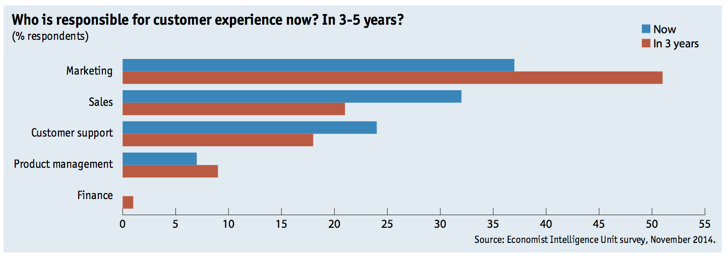 “Over vijf jaar is 75 procent van de marketeers verantwoordelijk voor de totale klantbeleving”, aldus een van de conclusies in een internationaal onderzoek van The Economist in 2015.