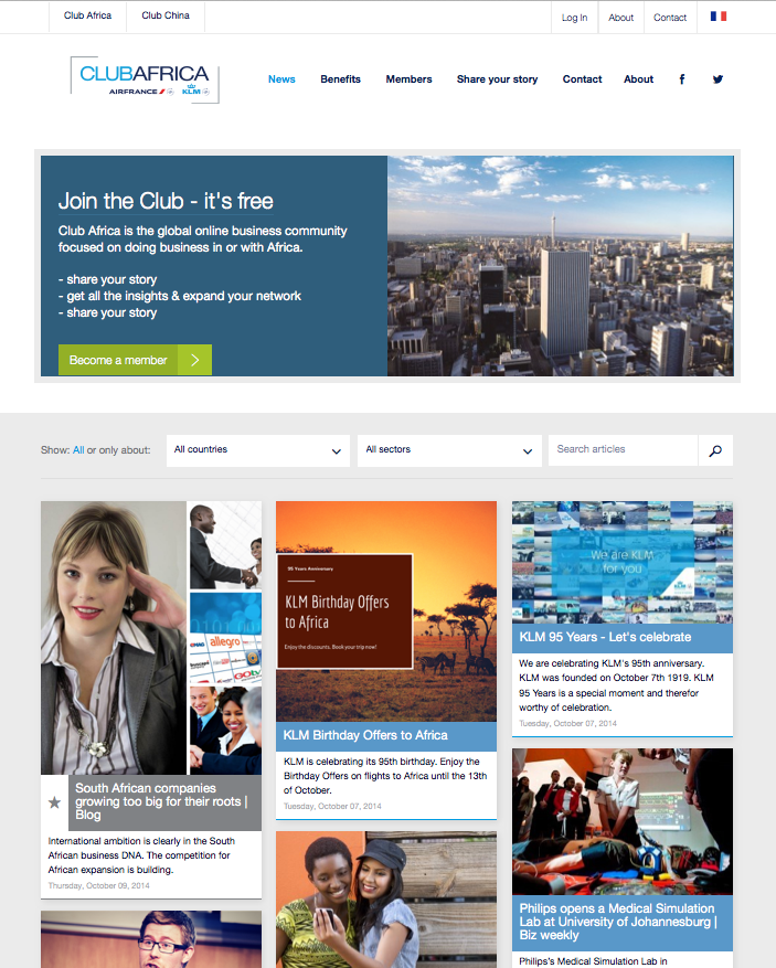 KLM heeft een paar LinkedIn-achtige business communities in het leven geroepen waarmee onze nationale trots de zakelijke beslissers wil binden en boeien. Het gaat dan om mensen die bepalen met welke luchtvaartmaatschappij binnen een organisatie mag worden gevlogen. Zo hebben ze Club Africa en Club China. Ze haken in op de gedeelde interesse ‘zakendoen in Africa’ of ‘zakendoen in China’.