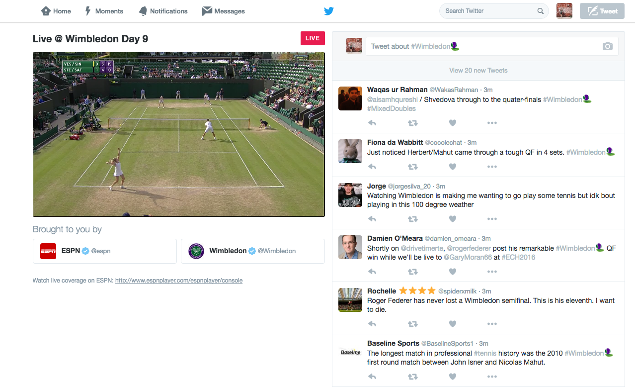 Een focus van Twitter zijn live events, zoals sportwedstrijden. Door deze te livestreamen, boort Twitter nieuwe advertentie-inkomsten aan, onder andere met video-ads voor en in de streams. Twitter heeft contentdeals gesloten met diverse sportbonden in de VS. Dit is een welkome stap, gezien de tegenvallende resultaten van de afgelopen jaren. Maar niet alleen sport komt in aanmerking voor live events. Zo werd de aankondiging van de Apple iPhone 7 gelivestreamd op Twitter, net als de laatste editie van Wimbledon.