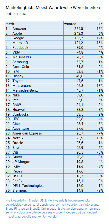 De Marketingfacts Meest Waardevolle Wereldmerken ziet er nu als volgt uit: