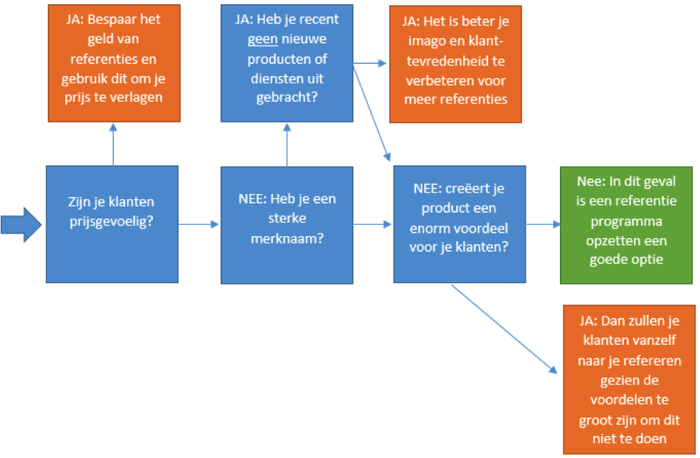 Hoe gevoelig is de klant voor lagere prijzen? Dit is belangrijk omdat als de klant hiervoor gevoelig is, je je geld beter kan investeren in directe kortingen. Dit zal een sterkere boost geven aan je referenties dan een beloning.