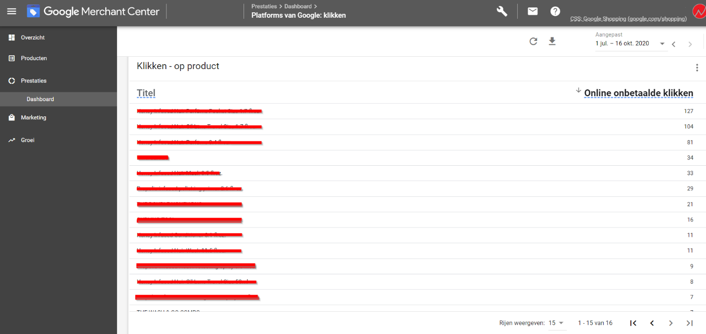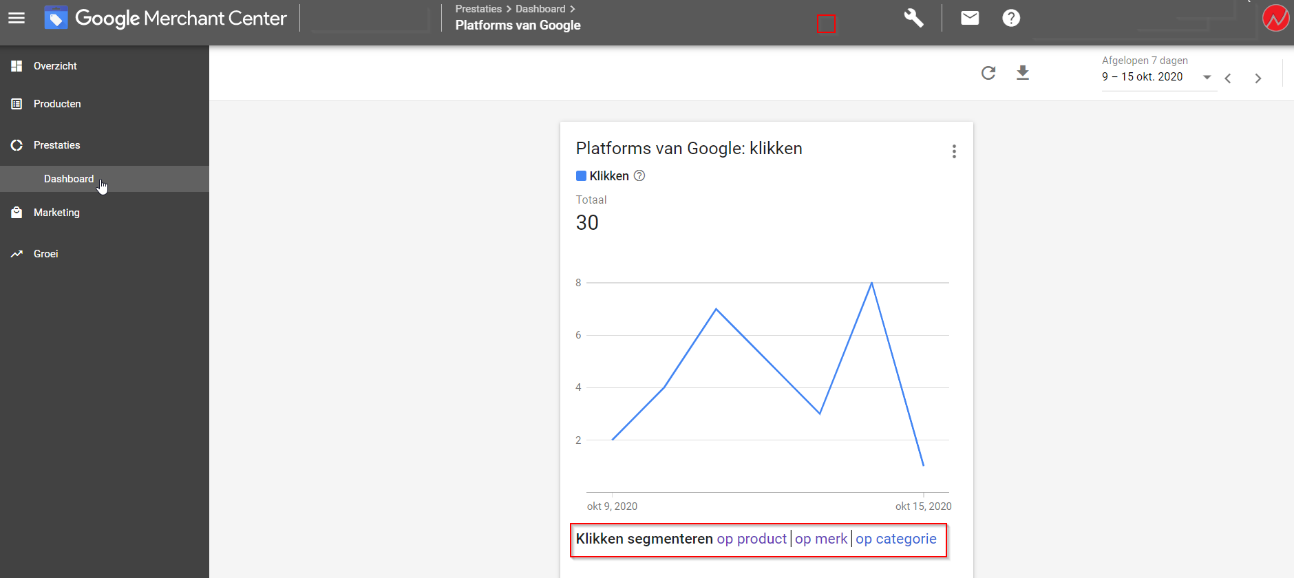 De performance van de free product listings kan worden gemonitord binnen het Merchant Center zelf. Het geeft inzicht in de klikken die je gratis weergaves binnengehaald hebben. Dit kan vervolgens weer gesegmenteerd worden in drie categorieën, namelijk op product-, productcategorie- en merkniveau (mocht dat van toepassing zijn). Zo kun je beter inzicht krijgen in de verkoopresultaten.