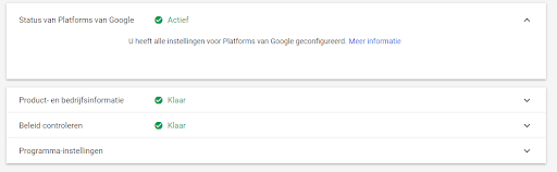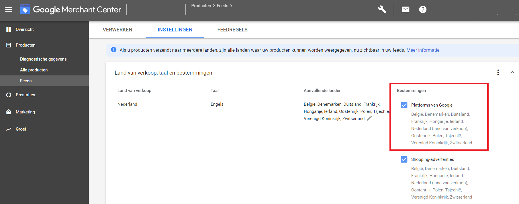 Vergeet daarbij ook niet de in de feed ‘Platforms van Google’ aan te vinken als bestemming om de producten uit te leveren.
