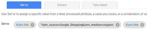 De performance van de free product listings wordt niet standaard weergegeven in Google Analytics. Hiervoor dient auto-tagging ingesteld te staan of moet je gebruikmaken van tracking-templates. Een andere manier is door middel van het aanmaken van extra feedregels die UTM-tags meegeven aan de producten waardoor de performance ook gemonitord kan worden in Analytics. Dat gaat als volgt: