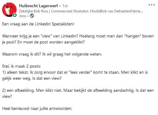 Als je iets op je blog of social media zet, dan wil je dat het bekeken wordt. Dus kijk je naar het aantal views. Logisch. Ga daar ook vooral mee door. En heb je een stuk content dat door het dak gaat? Rapporteer dat succes dan ook vooral aan je opdrachtgever of manager. Want, waarom niet? Je mag best trots zijn op je 300.000 LinkedIn-views of je 250 webinar-bezoekers. Als je ook maar eerlijk en duidelijk bent over de beperkte betekenis van zo’n succes.