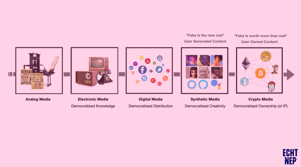 In ons boek Echt Nep beschrijven we hoe synthetische media – door AI gegenereerde media – zullen leiden tot de democratisering van creativiteit en dus tot een combinatorische explosie van creativiteit.