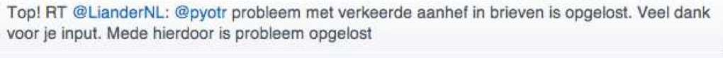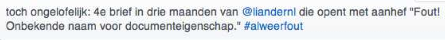 De eerste case gaat over een foutje in een brief. Via een tweet kwam meerdere keren het bericht binnen dat Liander brieven verstuurde met de aanhef: “Fout! Onbekende naam voor documenteigenschap”
