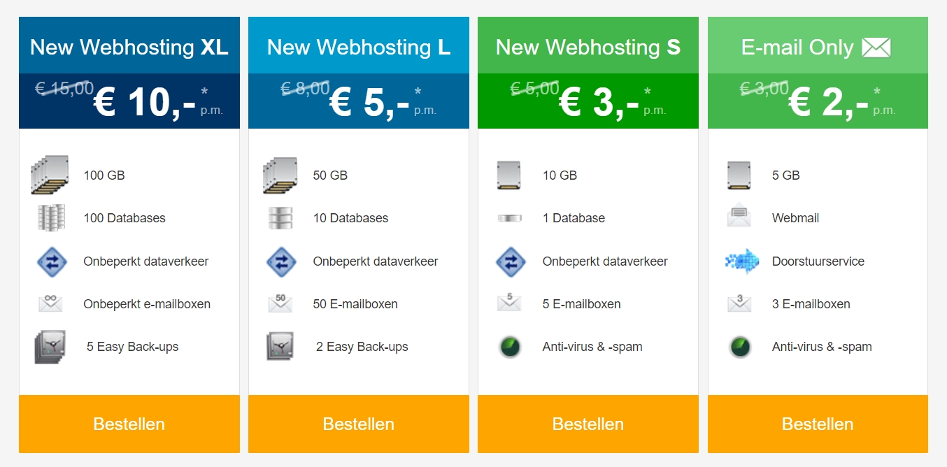 Voorbeeld van webhostingpakketten