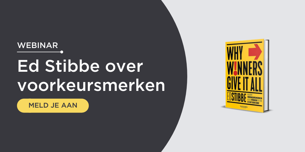 Ikea, Apple, Hema, Coolblue… Stuk voor stuk voorbeelden van voorkeursmerken. Wist je dat merkvoorkeur de enige marketing-KPI is die een bewezen verband heeft met het vergroten van je marktaandeel? Maar hoe stuur je als merkmanager op merkvoorkeur? Op 22 april (15.00 – 16.00 uur) laat Ed Stibbe, auteur van de bestseller ‘Why winners give it all’ je zien hoe je van jouw merk een voorkeursmerk maakt. Meld je aan