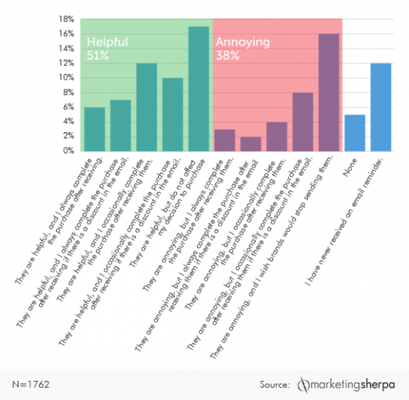 Het kanaal om een verlaten winkelwagencampagne op in te richten is e-mailmarketing. De kans is groot dat je je nu afvraagt of jouw bezoekers die mails niet gewoon vervelend vinden. Ik wind er geen doekjes om: een deel van de ontvangers ervaart dit inderdaad zo.