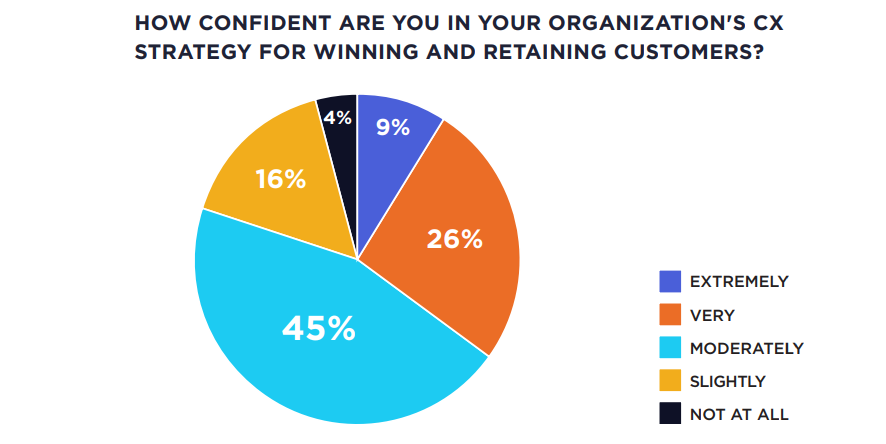 Meer dan 60% van de marketingleiders zegt dat het digitale klantentraject hun CX-strategie ingrijpend heeft veranderd. Bijna tweederde heeft weinig vertrouwen in het vermogen van hun CX-strategie om in deze nieuwe omgeving klanten aan te trekken en te behouden.