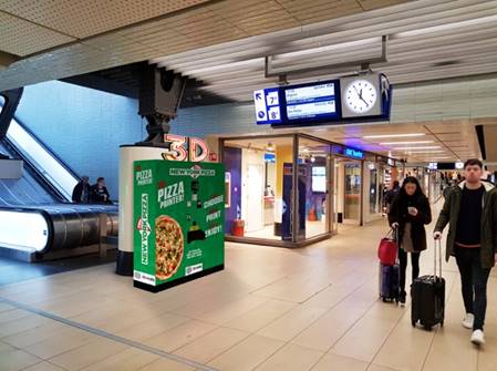 “Op weg naar je bestemming snel een verse pizza printen? Dat kan vanaf maandag op de NS Stations in Amsterdam, Rotterdam, Utrecht en Den Haag. Daar plaatst New York Pizza als eerste in Nederland speciale 3D-pizzaprinters die het samen met 3D Hubs heeft ontwikkeld. Met deze innovatie haakt New York Pizza in op 3D food printing-trends.”