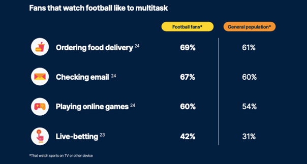 Naast de twee bovenstaande manieren om te profiteren van een mega event als het WK zien we de afgelopen jaren de opkomst van multitasking tijdens het kijken naar de wedstrijden. Het is tegenwoordig normaal om tijdens het volgen van je favoriete team ook op het tweede scherm actief te zijn.