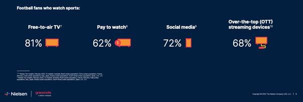 Hoe kunnen merken, broadcasters en platformen het best kapitaliseren op het WK Voetbal? Een review van het Nielsen World football Report 2022.