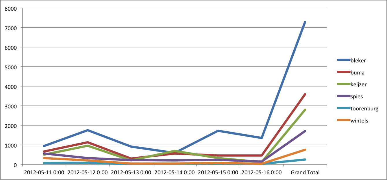 @Marcel, gaan we zeker doen. In principe wil ik eens in de twee weken een post maken over hoe je met monitoring van sociale media uitspraken kunt doen over ontwikkelingen in de verkiezingsstrijd.
