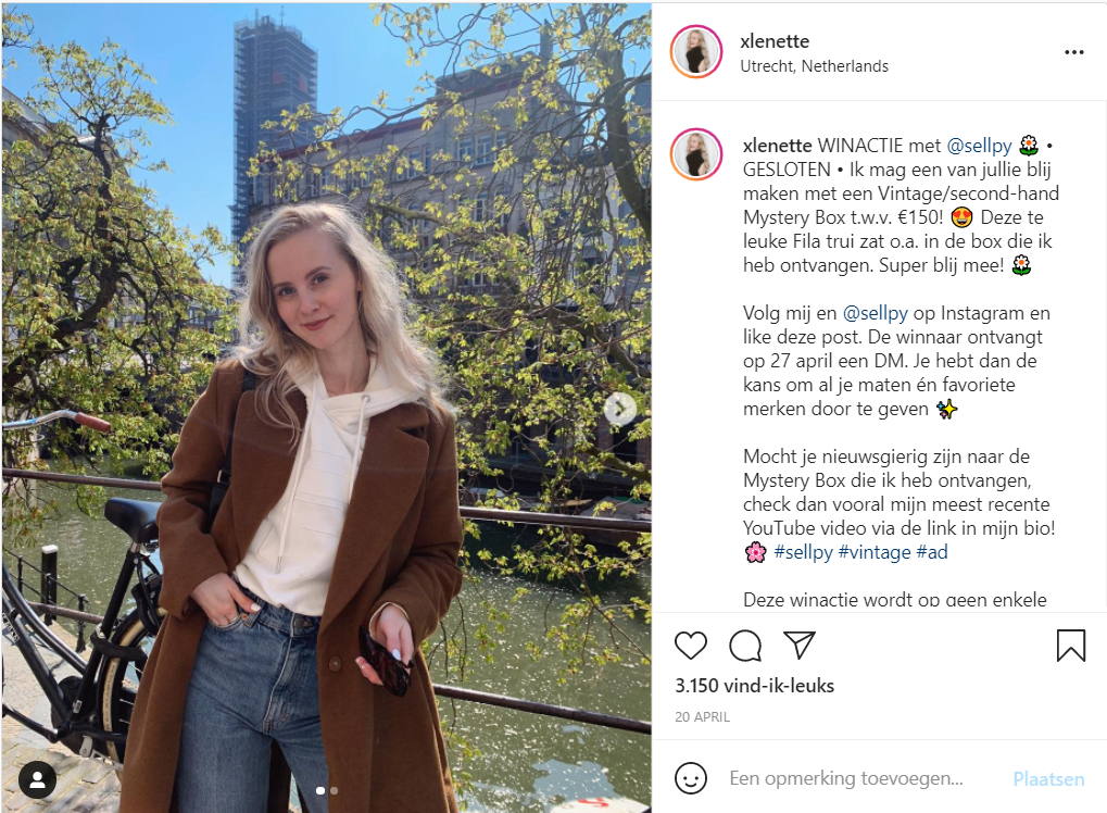- Stimuleer je volgers om te reageren. Vraag ze bijvoorbeeld waarom zij graag willen winnen. Dat is een relevantie manier om je engagement een boost te geven, wat weer gunstig is voor het algoritme van Instagram.
