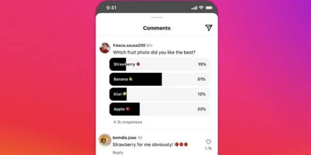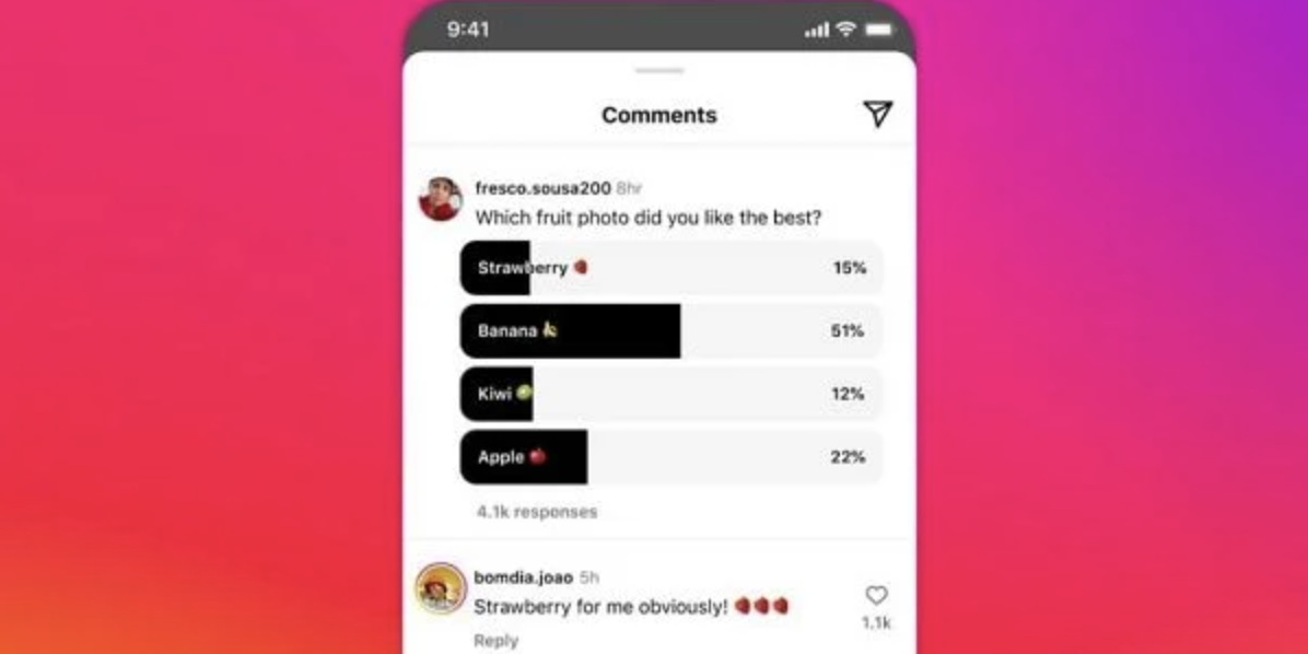 Instagram komt met een nieuwe interactieve functie! De functie zit momenteel nog in de testfase, maar belooft nu al een hoop interactie te gaan creëren. Het zal namelijk mogelijk worden om polls toe te voegen aan comments op zowel posts als reels. Een logische toevoeging, gezien de stijgende populariteit van polls.