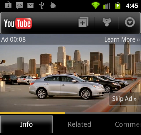 Trueview is de mogelijkheid om een advertentie na 5 seconden over te slaan of te kiezen uit een aantal advertenties en gewone reclames. Deze functie helpt adverteerders om enkel geïnteresseerde kijkers te bereiken. Er wordt dus ook pas betaald nadat een kijker de complete advertentie heeft bekeken. Deze functie word nu ook geïntroduceerd voor het mobiele domein. Deze functie moet uiteraard nog wel worden ingeschakeld door de adverteerder.