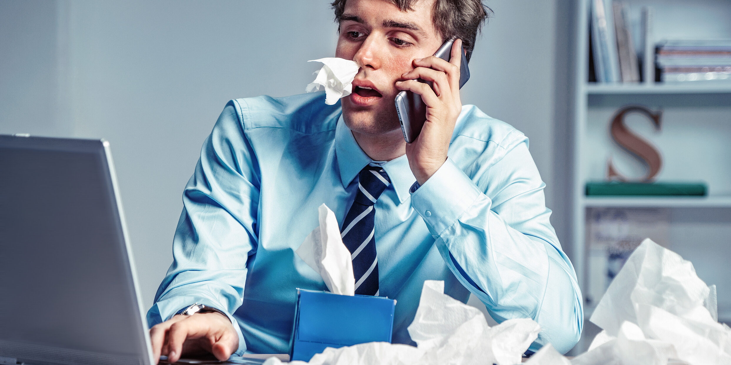 Waarom? Omdat ik continu mensen tegenover me heb die ziek doorwerken. Snotterend, hoestend, half op. De wil is goed maar de impact is slecht.