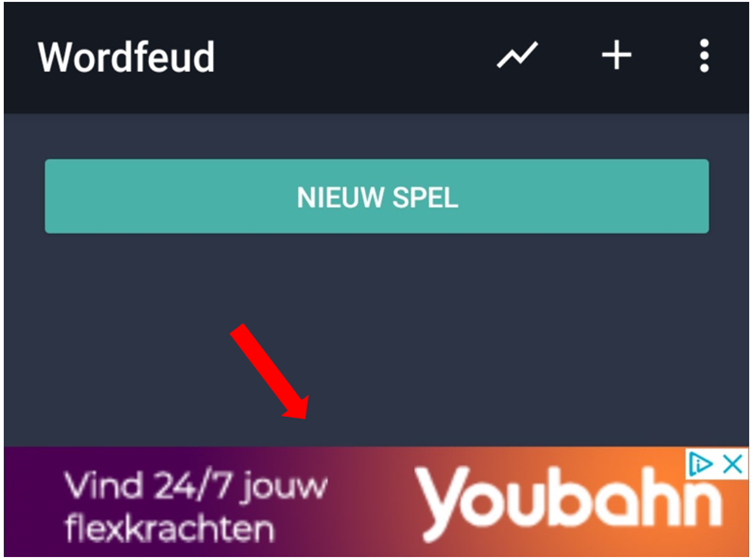 Voorbeeld van een banner-advertentie van Youbahn in de app Wordfeud