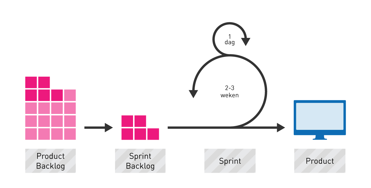 Bij Scrum werk je met deelopleveringen, sprints genoemd. Je levert dus in sprints van twee à drie weken steeds een deelproduct op. Dit is feitelijk een onderdeel van je eindproduct dat je los kunt presenteren aan je stakeholders, zoals de directie, je leidinggevende, je collega’s en eindgebruikers (zie ook #4)