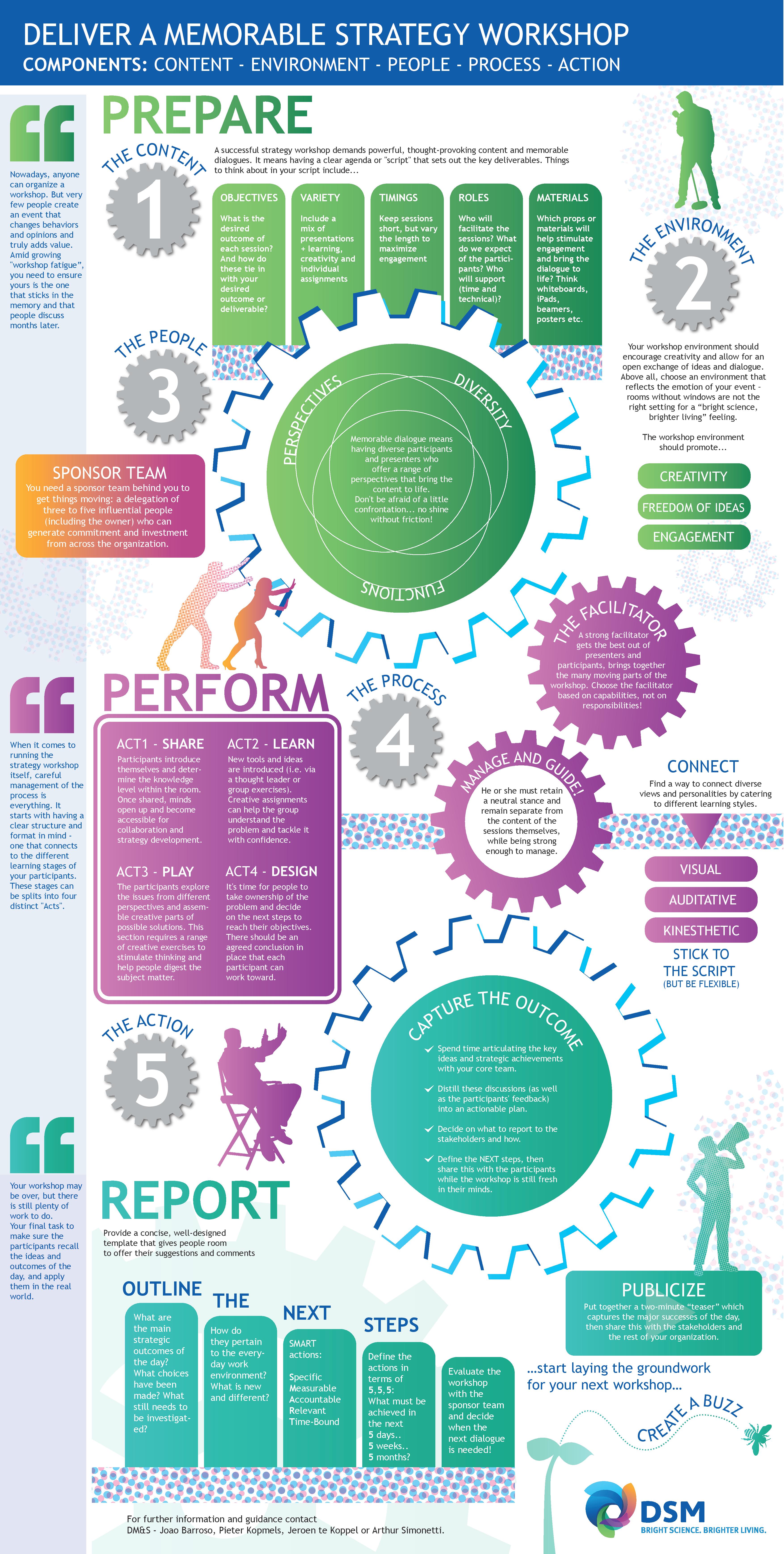 Vaak verdient de strategische discussie meer dan één workshop en in dat geval wil je misschien al beginnen met het leggen van de basis voor een vervolg. De interactie en feedback die je ontvangt o je workshop, zijn cruciaal in het vormgeven van je volgende meesterwerk.