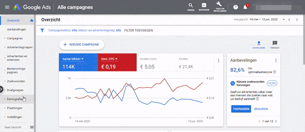 Tip: naast de demografische insights stelt Google hier ook ‘Relevante doelgroepen’ voor. Deze kunnen goed dienen als opties voor targeting van display-campagnes.