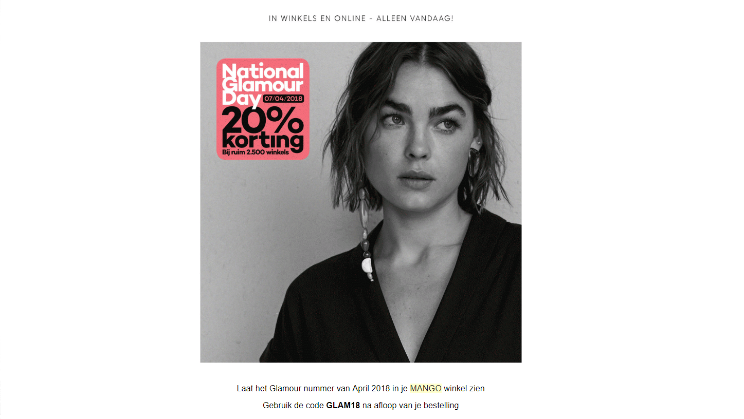 Mango is een goed voorbeeld van een bedrijf dat vaak aan ‘flash sales’ doet. Zij geven hun klanten geregeld een dag de tijd om van een bepaalde aanbieding of korting te profiteren. Dat is een strategie die steeds opnieuw toegepast kan worden, gezien de korte duur van de promotie.