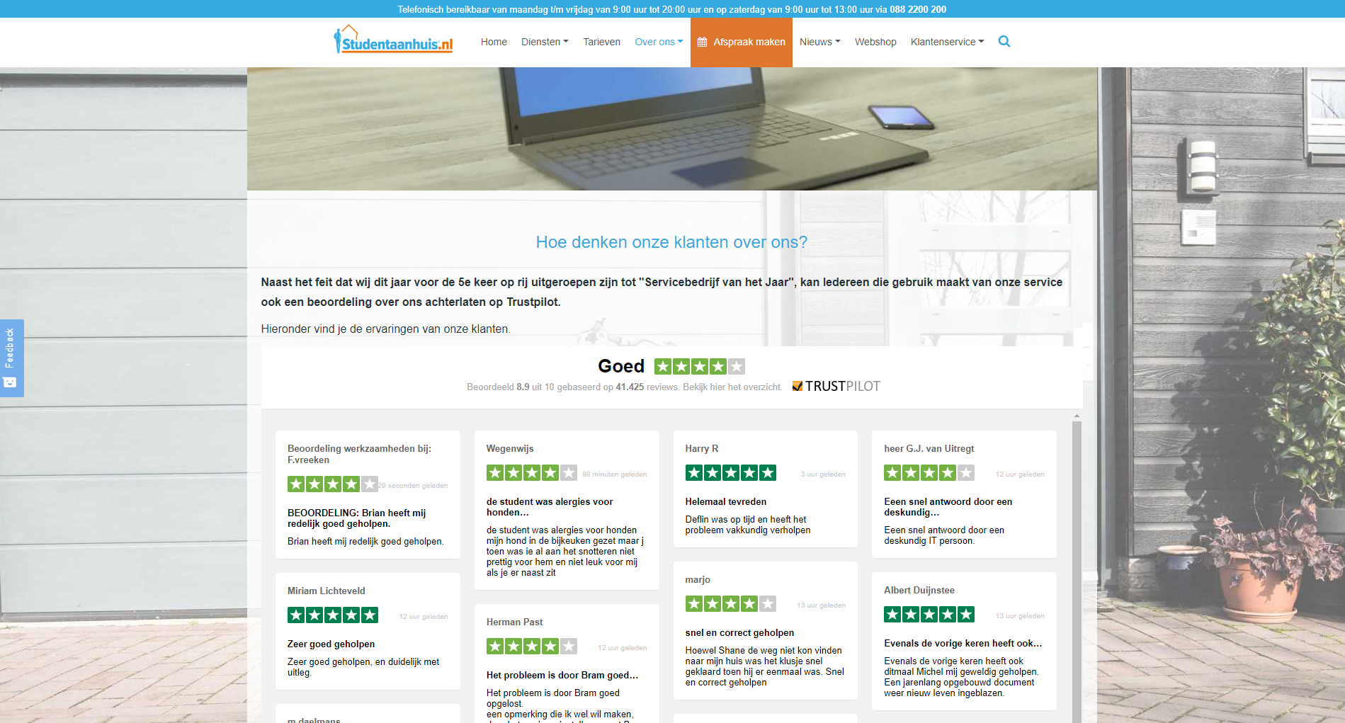 Studentaanhuis.nl heeft een volledige webpagina gewijd aan reviews.