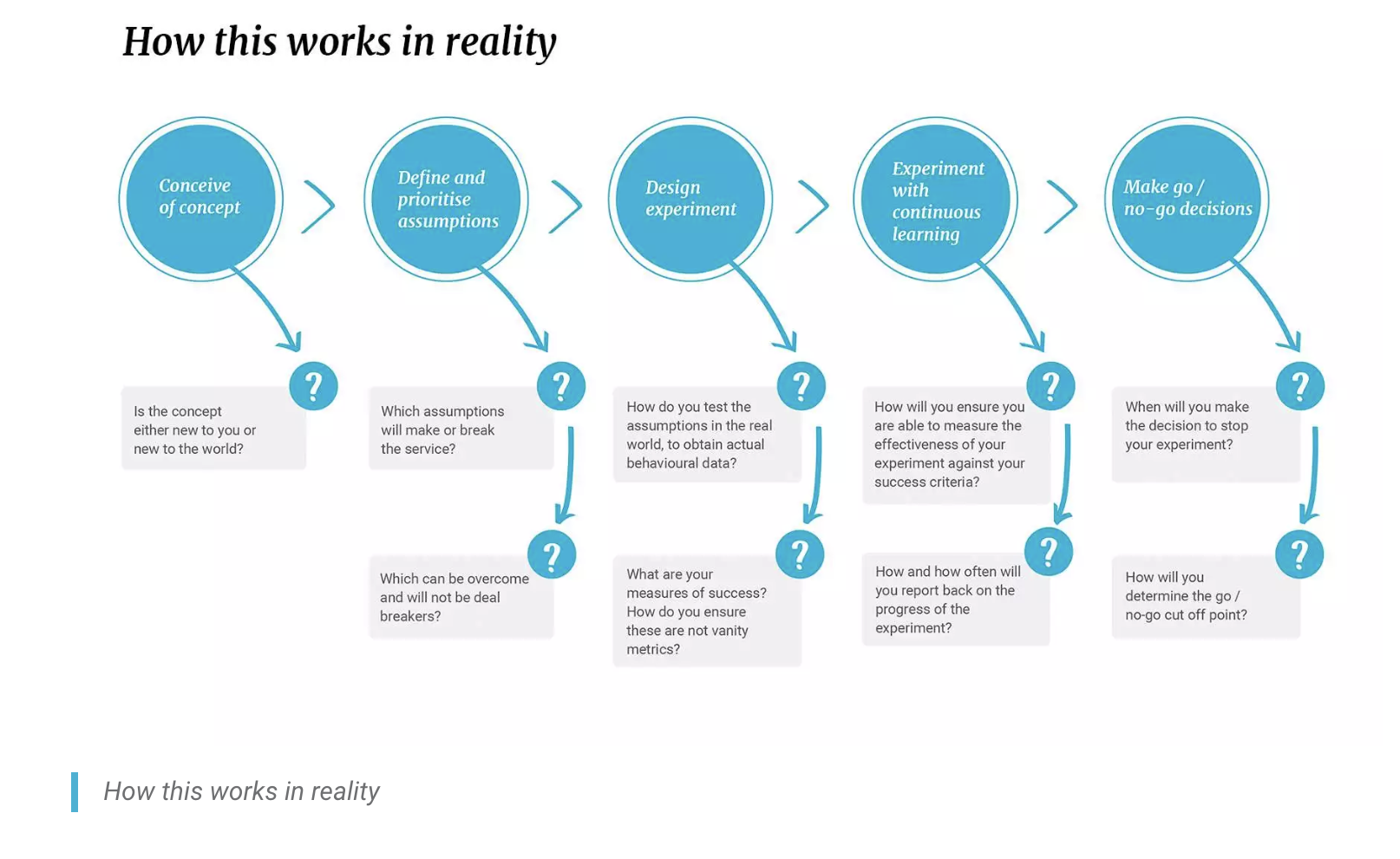 Service-scenario’s bieden aan de ene kant een (gevisualiseerde) visie op het service- en bedieningsconcept van de toekomst, waarbij verschillende mogelijkheden worden opengehouden. Mogelijkheden die afhankelijk zijn van de manier waarop de toekomst zich ontvouwt. Denk hierbij bijvoorbeeld aan opties die pas worden ontwikkeld wanneer duidelijk is met welke snelheid nieuwe kanalen duurzaam worden omarmd, of bepaalde producten groei laten zien. Deze scenario’s dienen vervolgens als basis voor experimenten die helpen aannames in je scenario’s te toetsen en valideren in de echte wereld.