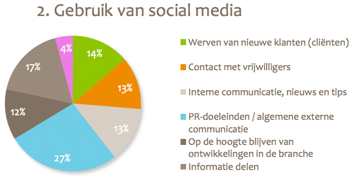 Uit het onderzoek #gezondcommuniceren2014, over social media-gebruik in de zorg- en welzijnssector, blijkt dat veel instellingen in deze branche willen investeren in social media. 41 procent wil het gebruik intensiveren, en 10 procent wil dit jaar van start gaan. Toch ziet een meerendeel van de ondervraagden beren op de weg; ze ervaren knelpunten als te weinig draagvlak, het kost veel tijd en angst voor negatieve publiciteit. Daarom zijn ze vooralsnog terughoudend in de aanpak – men kiest voor gebaande paden, in plaats van te experimenteren – en blijft het een klein onderdeel van de gehele communicatie.